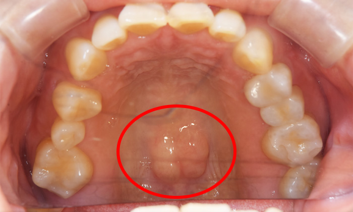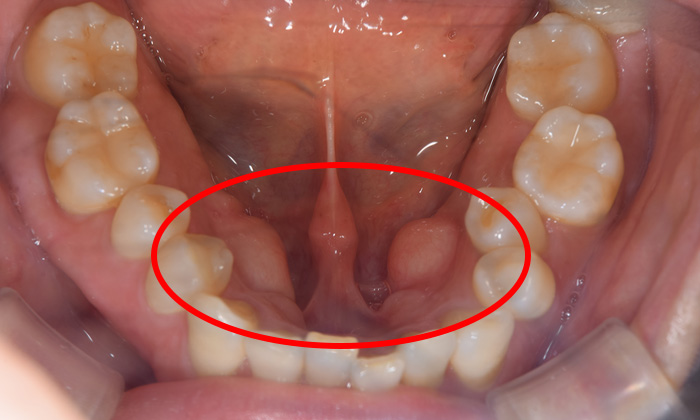 口腔筋機能療法(MFT)歯ぎしりやくいしばり、TCHがあると、骨の隆起ができます。うわあごではちょうど真ん中あたりに、したあごには、舌の先端付近にできてしまいます。