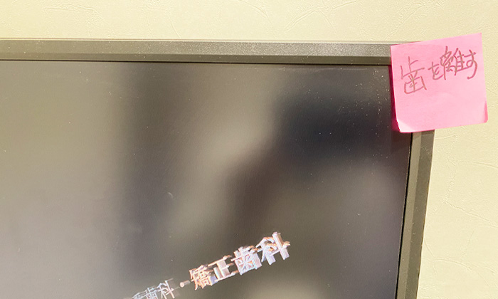 小さくても良いのですが、よく自分が作業をしているパソコンや机に「歯を離す」「力を抜く」などと書いて貼っておきます。なるべく多くの場所に貼って気づかせることが大切ですので、みやすい所でいろんな場所に10カ所以上貼っておくと良いでしょう。少ないと気づけないので、改善が難しくなります。