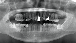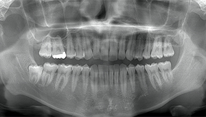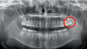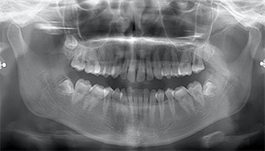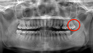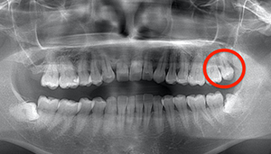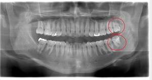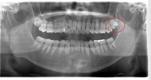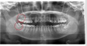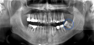 真っ直ぐに生えている親知らず・完全に埋まっている親知らずの抜歯症例