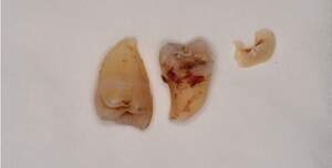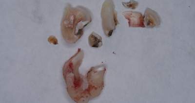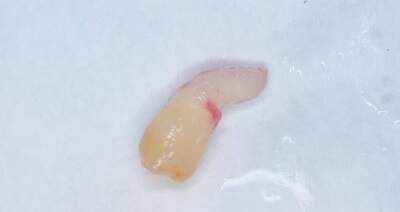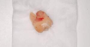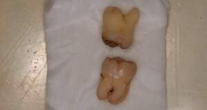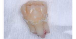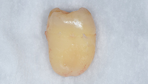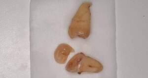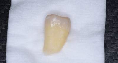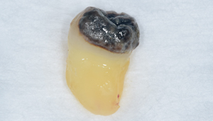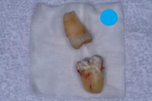| 治療方針 | 初診時の検査で虫歯を発見し、抜歯に至りました。 今回は真っ直ぐ生えていたため、切開等なくそのまま器具を使用し、抜歯しました。 |