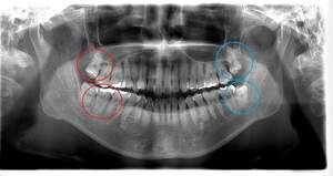 | 抜歯内容 | 右上8番普通抜歯 右下8番の半埋伏抜歯 |