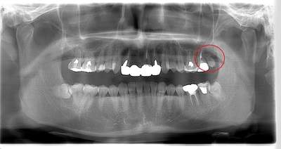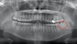 | 治療方針 | 親知らずの手前の7番の虫歯治療が必要なため、先に虫歯になっている親知らずの抜歯から始めました。 |