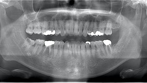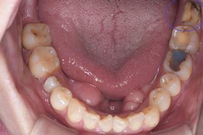 | 主訴 | 右下奥に食べ物が詰まる、口臭が気になる |