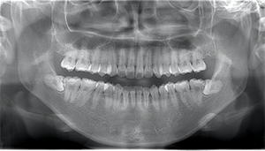 | 抜歯内容 | 右下親知らずが半分埋まっているため、汚れが溜まりやすく気になる為患者様のご希望により抜歯しました。 このケースでは事前にCTを撮影し、歯の位置、神経との位置関係を確認してから抜歯を行っています。 抜歯後、一週間は腫れと痛みがありましたが鎮痛剤を飲んで対応して頂き、糸取りをする頃には痛みや腫れは無くなり、患者様も安心しておられました。 |