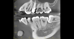 | 担当者所見 | 左上7番の遠心と8番が近接していたため、7番は今後クラウン予定で綺麗な物を入れるため、8番が磨きづらいこともあり、抜歯することになりました。 事前にCT撮影をしました。近心に根っこが湾曲しており、頬側遠心方向に鉗子で揺らしながら根っこが折れないように慎重に抜歯をしました。 |