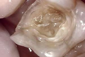 虫歯を取り除いた後、神経を守るためのお薬をつめて、2ヶ月ほど経過観察をした。