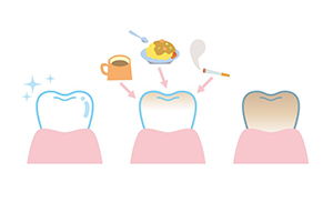 生活習慣によっては、早い段階で再着色することがありますが、定期的なクリーニングで着色しにくくすることが出来ます。ただし加齢による変色や元々の自然な歯の色は、歯の内部の変色であり表面の汚れではないため、クリーニングで落とすことが出来ません。この変色を落とすためには、ホワイトニングをオススメします。