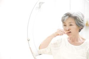 舌を傷つけないために舌専用のブラシを使って、鏡を見ながら奥から手前に舌ブラシを動かして汚れを落とします。前から後ろに舌ブラシを動かすと、汚れを飲み込んでしまう可能性があるので注意してください。