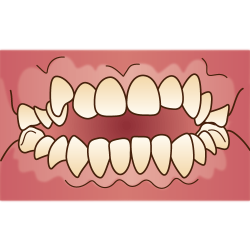 - 噛み合わせが変わる、歯並びが悪くなる