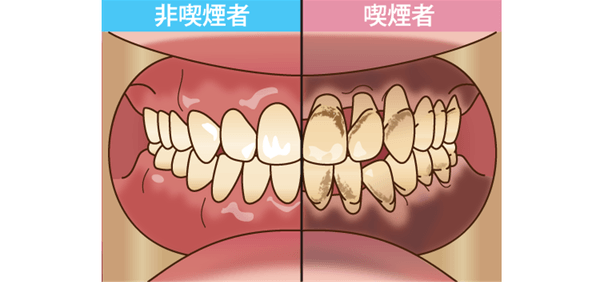 喫煙者は、ニコチンの影響により血液が十分に流れないため、歯周病による炎症反応(出血等)の症状が出にくく、気づいた時には手遅れになりやすいと言われています。