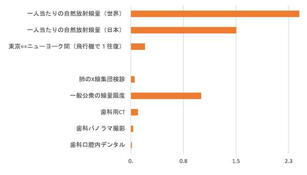 | 歯科用CT(1回) | 0.1ミリシーベルト |
