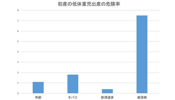 近年、歯周病が低体重児出産や早産を誘発することが指摘されています。母親が歯周病に罹患している場合、早産のリスクは7.5倍にものぼるといわれています。