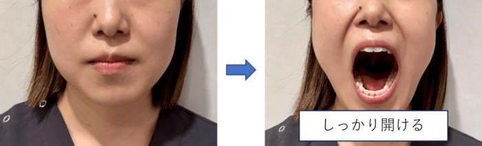 ①舌全体を口蓋に吸いつけ、ゆっくりと開ける
