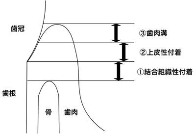 - 軽く付着している部分(上皮性付着)と