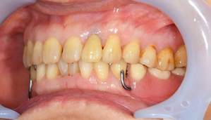 MTM中。頬側には審美面の回復のために仮歯がついています。