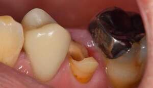 また、無理矢理かぶせ物を入れた場合、すぐ外れたり(歯肉の中は防湿、止血が困難なため、接着が不可能なため)、歯が割れてしまい、その果ては抜歯になります。