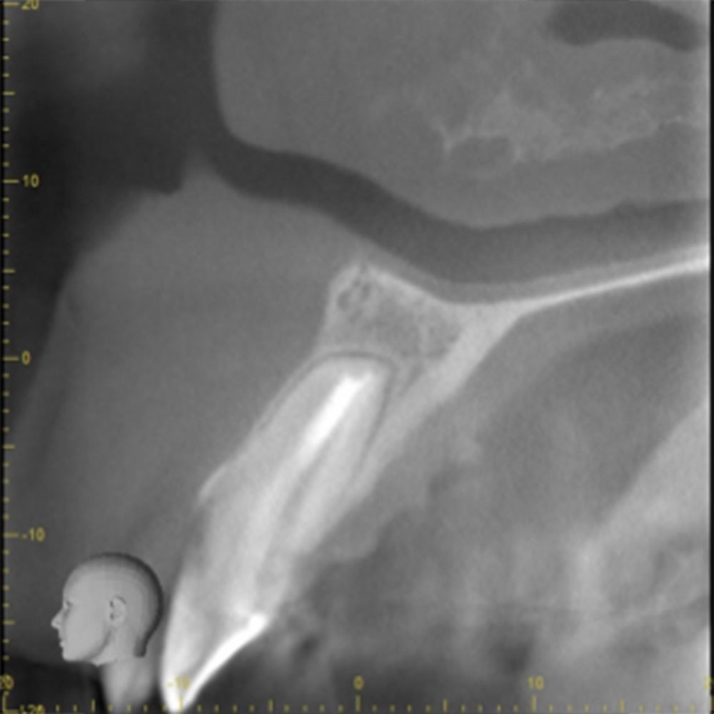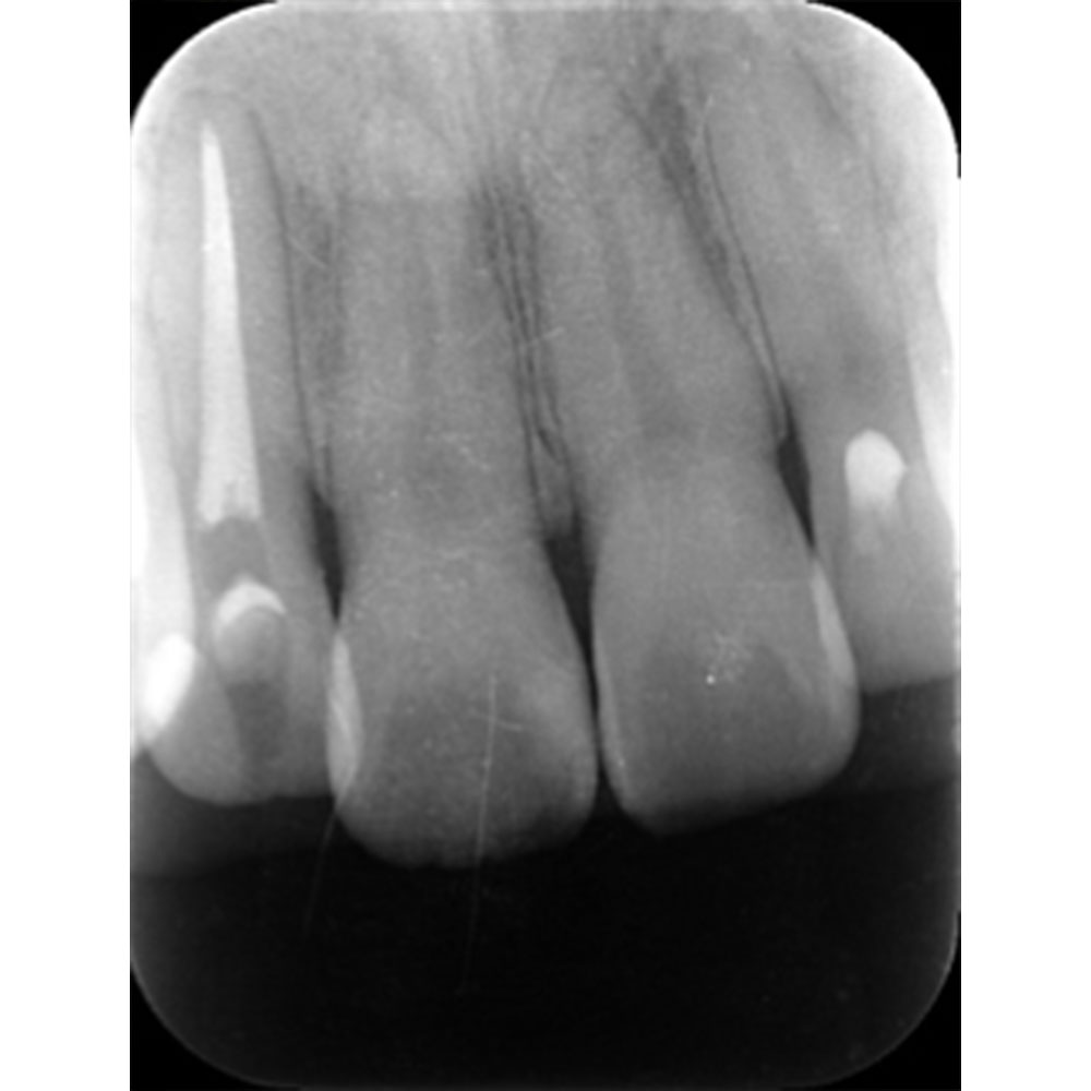 治療後3ヶ月経つと上顎洞への炎症も無くなっています。また、上顎洞底線もきれいにみえます。4番目の歯の根尖周囲の透過像もなくなりました。5番目の根尖にまだ透過像がありますが、臨床的症状がないことから、治癒傾向にあるものと判断しました。