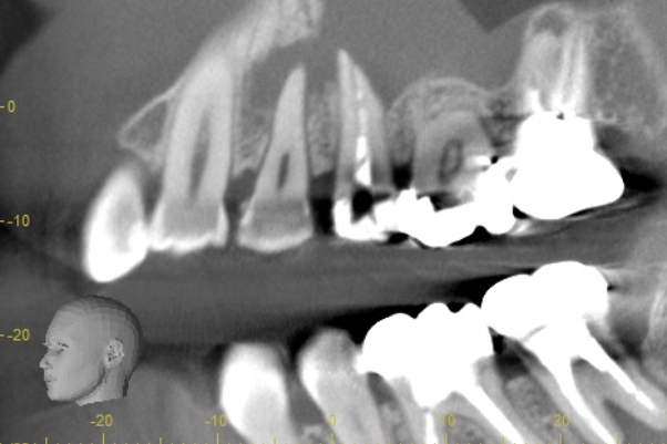 | 根の先の黒い影は消失しました。 | 術後6ヶ月のCT画像です。こちらでも、根の先に黒い影は見当たらないです。 |