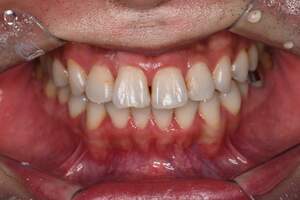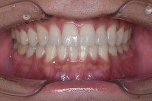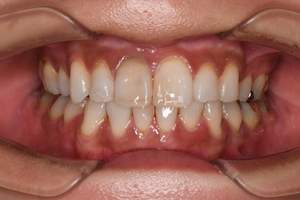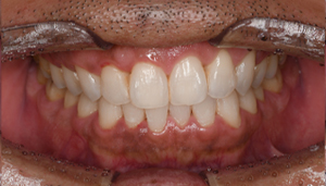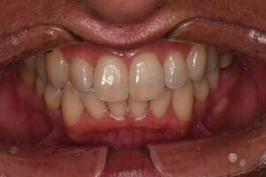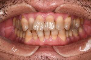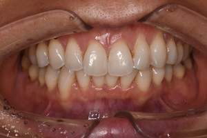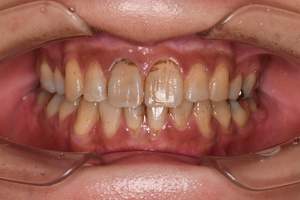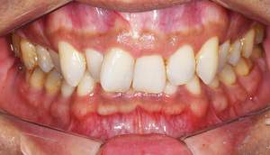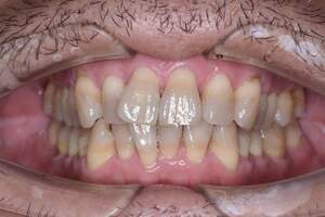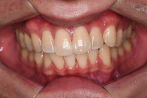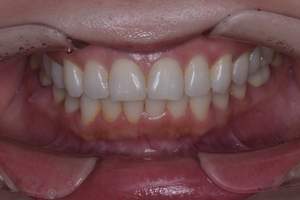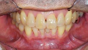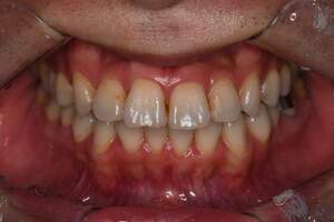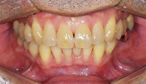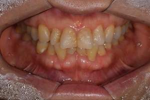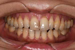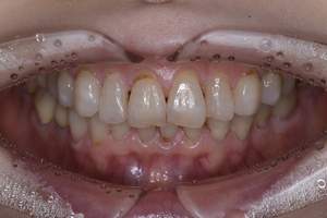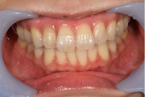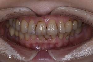 | 治療方針 | 約4年ぶりの歯科医院で歯のクリーニングを行いたいと来院されました。 歯石除去と歯の表面に付着したプラークを取り除きました。 また、ご自身でしっかり歯磨きができるように、歯ブラシのレッスンも行いました。 歯ぐきの中の見えない部分にも歯石が多量に付着しているので今後は緑下歯石除去(SRP)を行なっていく予定です。 |