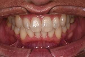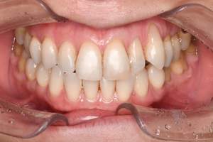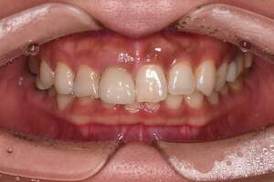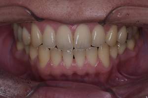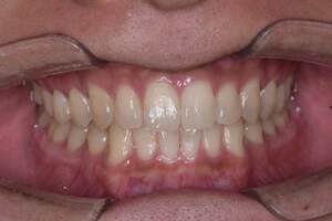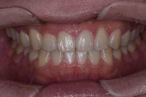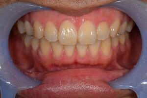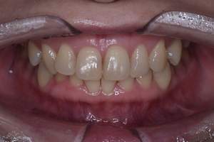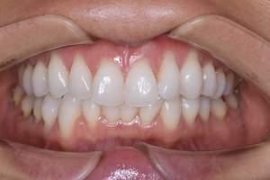 | 担当者所見 | 長年の歯ぎしり食いしばりの影響で、歯ぐきに近い部分の歯が削れていたり、歯ぐきが下がり下の組織が露出している部位がありました。 その為ホワイトニング薬剤による知覚過敏を心配していましたが、幸い凍みる症状もなく2週間最後まで行えました。 白くトーンアップした歯を見て、口元から顔全体の印象も明るくなり嬉しいと喜んでくださいました。 |