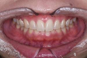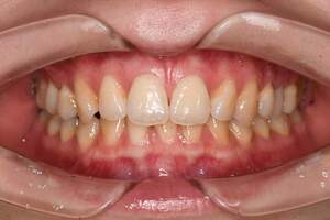 | 担当者所見 | 4月から5月にかけての長期休みを利用し毎日ホームホワイトニングを行ってもらいました。 他の歯科医院ではホワイトニング効果が得にくいと言われ、諦めていましたが約1ヶ月で白くなりました。 今後もさらに白くするためにデュアルホワイトニングと定期的なクリーニングを行う予定です。 |