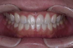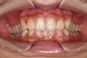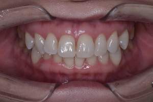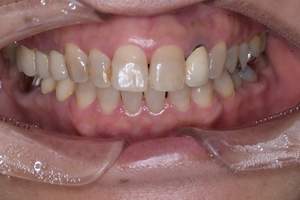 | 担当者所見 | 服薬による歯の変色がありました。通常よりも歯が白くなりにくい歯であることを説明した上で行いました。1週間のうち2時間半装着を5日間行っていただきました。 患者さま自身も効果を感じるほど白くなりました。 前歯の歯と歯の間のレジンによる着色は白くなった色に合わせてコンポジットレジンによる充填を行う予定です。 今後もさらに白くしていくためホームホワイトニングの継続と歯石除去やPMTCなどのクリーニングを行います。 |