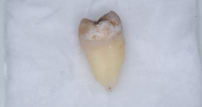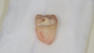 | 治療方針 | 初診時の検査で虫歯を発見し、抜歯に至りました。 今回は真っ直ぐ生えていたため、切開等なくそのまま器具を使用し、抜歯しました。 |