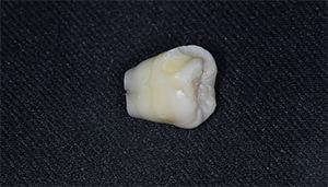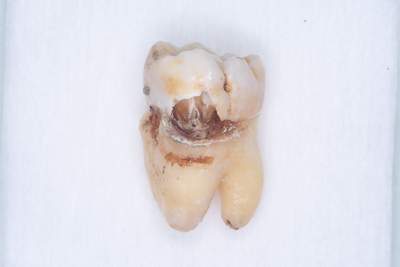 | 担当者所見 | お痛みはなかったものの、大きく虫歯になっており、いつ痛みだしてもおかしくない状態でした。根っこが少し湾曲してましたが、折れることなく、抜歯できました。 |