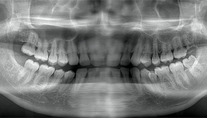 真っ直ぐに生えている親知らず・完全に埋まっている親知らずの抜歯症例