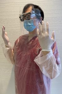 ・着用しているPPE:マスク、目の防護衣、手袋、ガウン