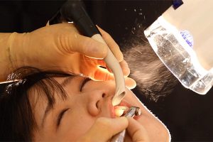 写真のように歯科治療はかなりの水しぶき(エアロゾル)が飛びます。