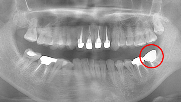 初診時のパノラマです。左下の一番奥の歯が虫歯になっているのがわかります。