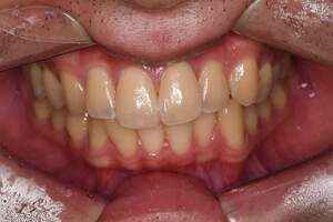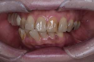 | 治療方針 | 約4年ぶりの歯科医院で歯のクリーニングを行いたいと来院されました。 歯石除去と歯の表面に付着したプラークを取り除きました。 また、ご自身でしっかり歯磨きができるように、歯ブラシのレッスンも行いました。 歯ぐきの中の見えない部分にも歯石が多量に付着しているので今後は緑下歯石除去(SRP)を行なっていく予定です。 |